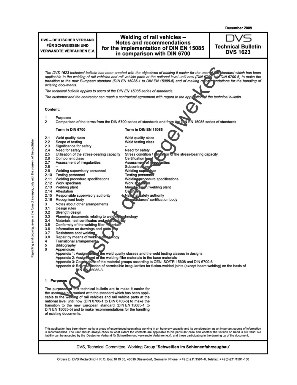 Welding of rail vehicles - Notes and recommendations for the implementation of DIN EN 15085 in comparison with DIN 6700
