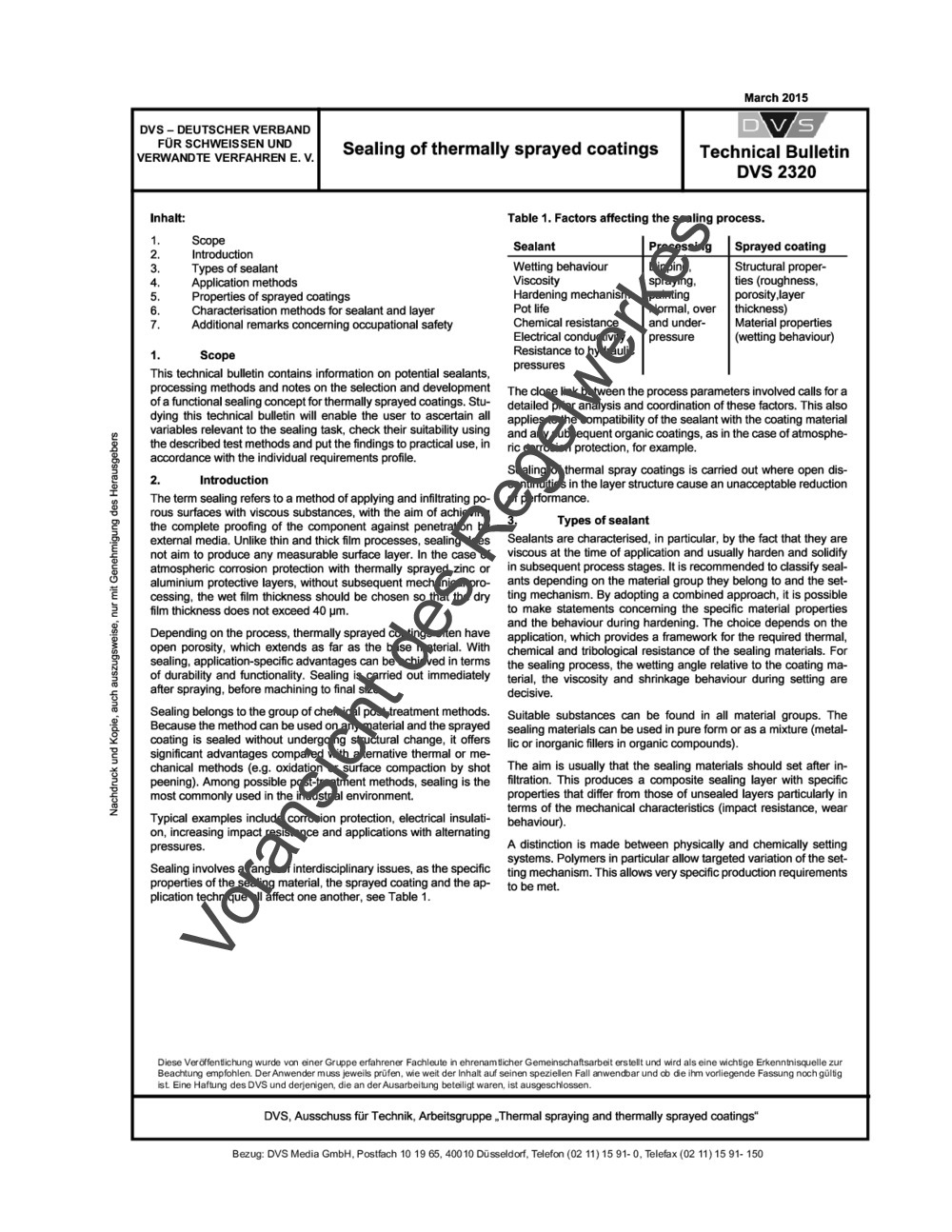 Technical Bulletin DVS 2320 (im Archiv) (03/2015)