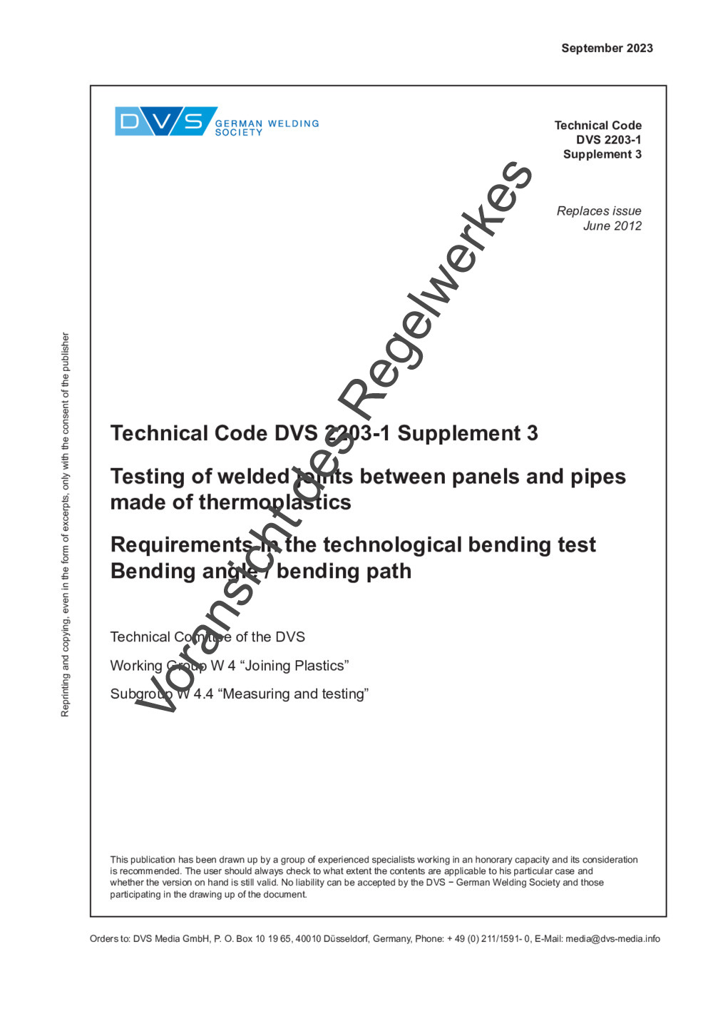 Guideline DVS 2203-1 Supplement 3 ENG (09/2023)
