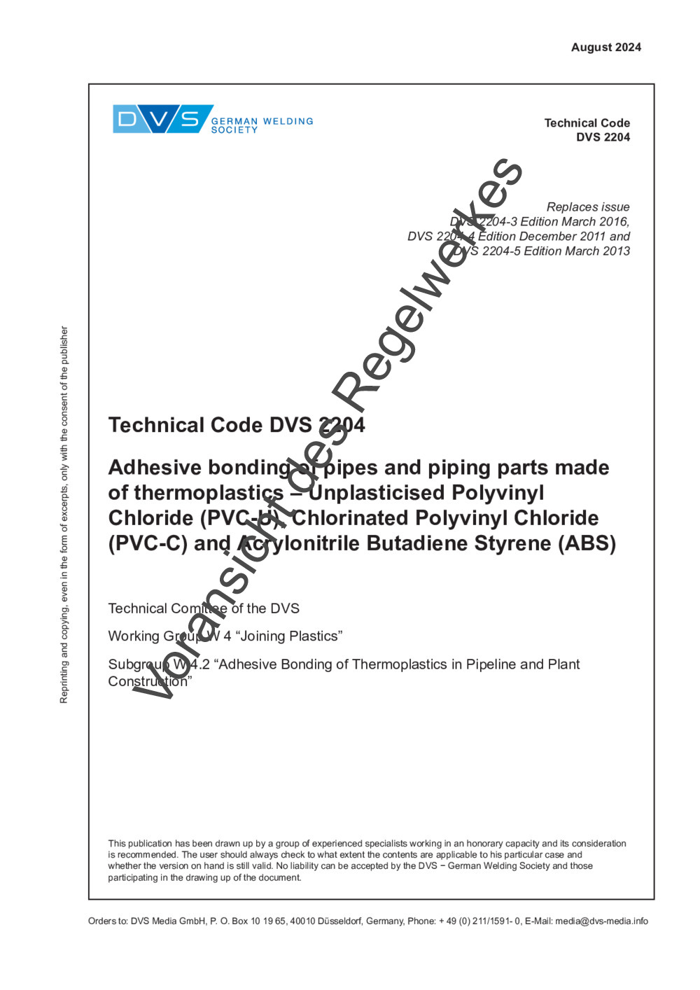 Adhesive bonding of pipes and piping parts made of thermoplastics – Unplasticised Polyvinyl Chloride (PVC-U), Chlorinated Polyvinyl Chloride