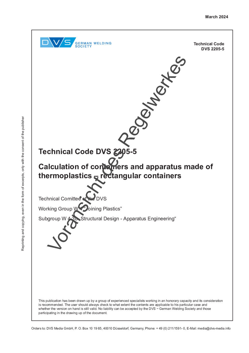 Calculation of containers and apparatus made of thermoplastics – rectangular containers