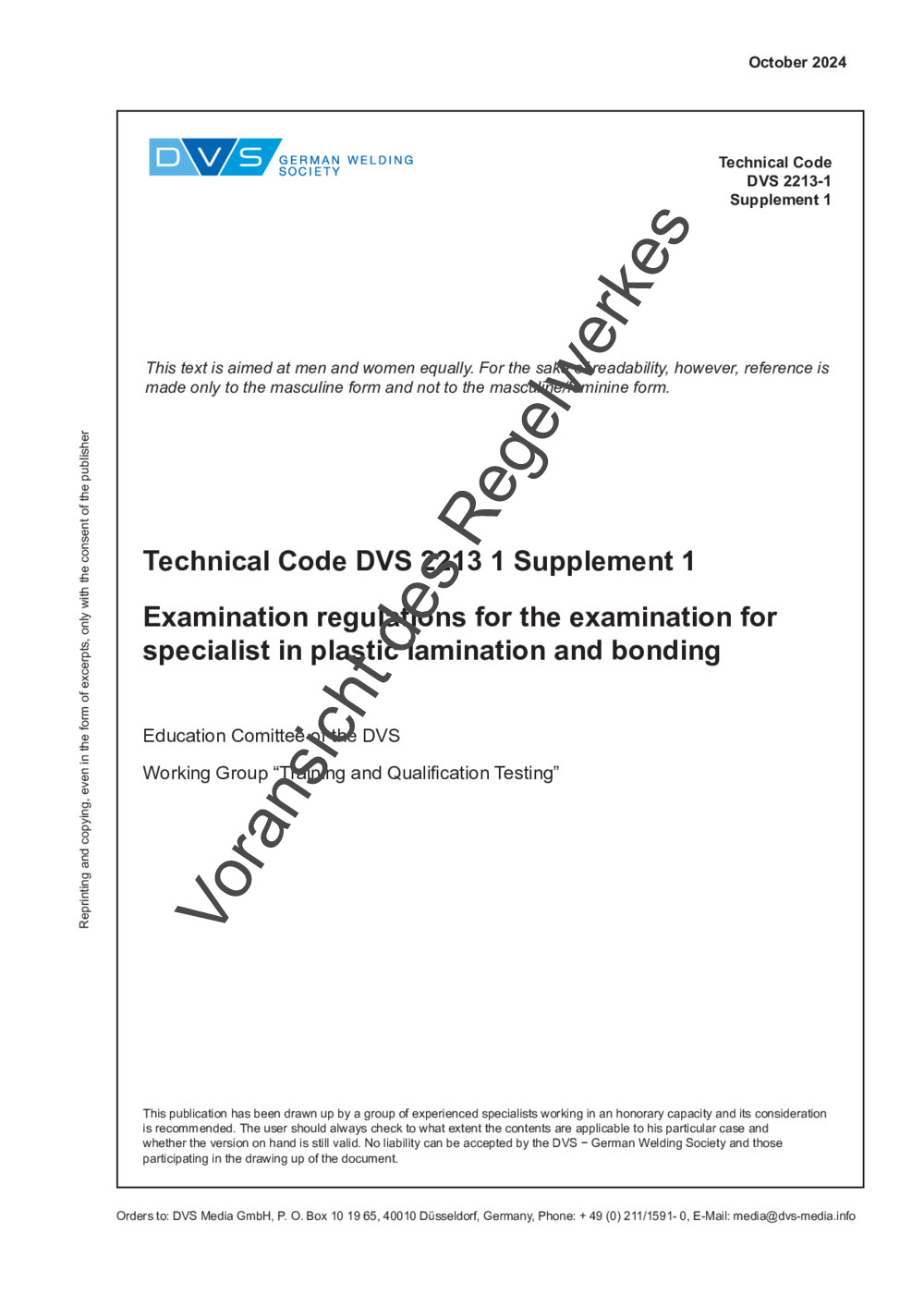 Guideline DVS 2213-1 Supplement 1 (10/2024)
