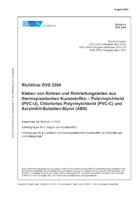 Diese Richtlinie gilt für das Kleben von Rohren und Rohrleitungsteilen aus Polyvinylchlorid (PVC-U), Chloriertem Polyvinylchlorid (PVC-C) und Acrylnitril-Butadien-Styrol (ABS) gemäß den Normen EN 1329 (PVC-U), EN ISO 1452 (PVC-U), EN 1455 (ABS), EN 1566 (PVC-C) und EN ISO 15493 (PVC-U, PVC-C und ABS) und EN ISO 15877 (PVC-C). Diese Richtlinie führt die bisherigen Richtlinien DVS 2204-3, -4, -5 zusammen. Die Richtlinie DVS 2204-1 wird ersatzlos zurückgezogen. Die Grundlagen zum Kleben thermoplastischer Kunststoffe sind der Fachliteratur zu entnehmen.