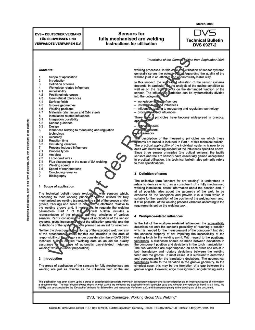 Technical Bulletin DVS 0927-2 (09/2008)
