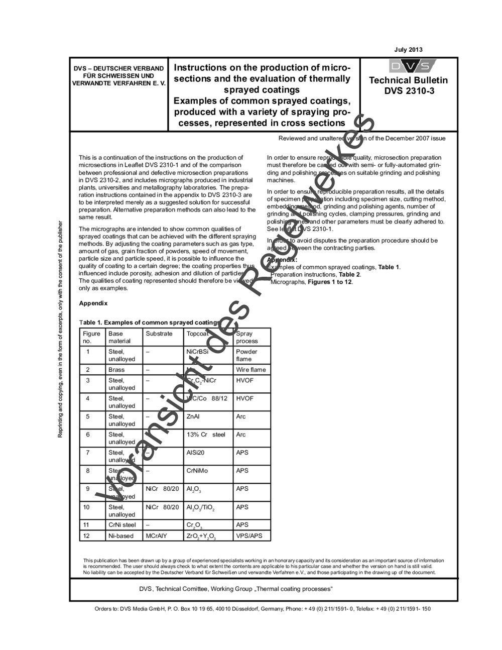 Technical Bulletin DVS 2310-3 (im Archiv) (07/2013)