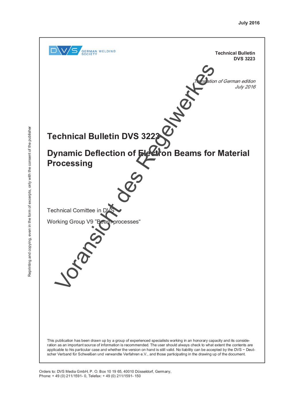 Technical Bulletin DVS 3223 (07/2016)