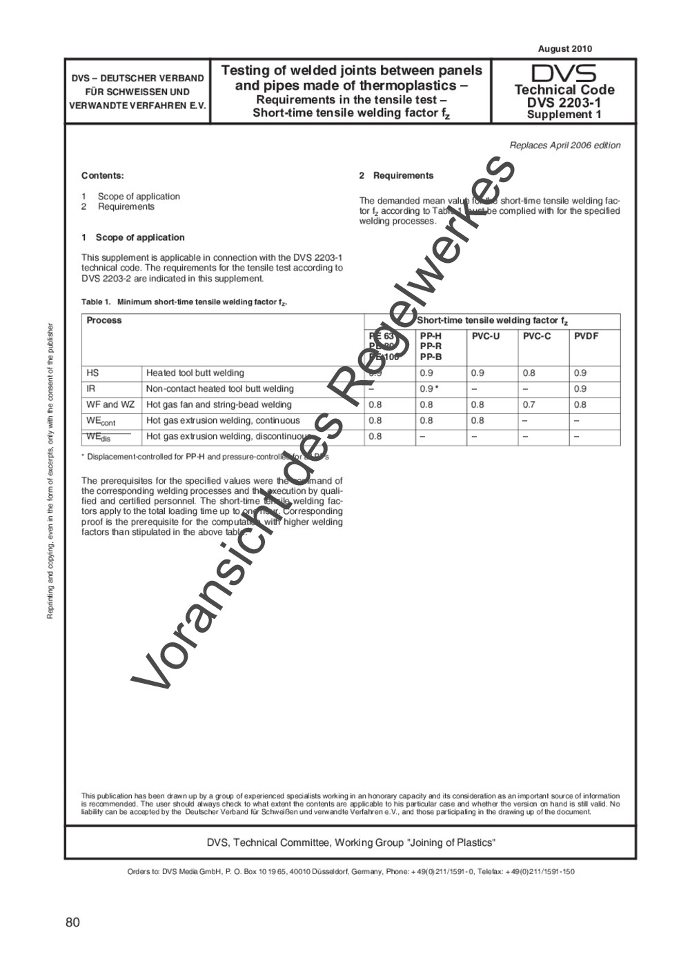Guideline DVS 2203-1 Supplement 1 (08/2010)