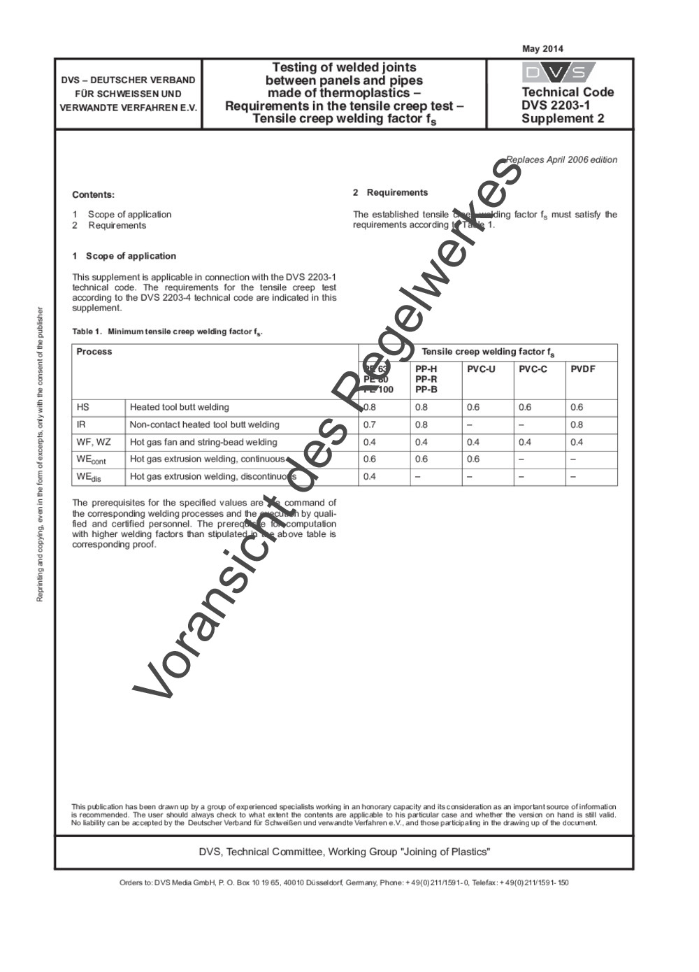 Guideline DVS 2203-1 Supplement 2 (05/2014)