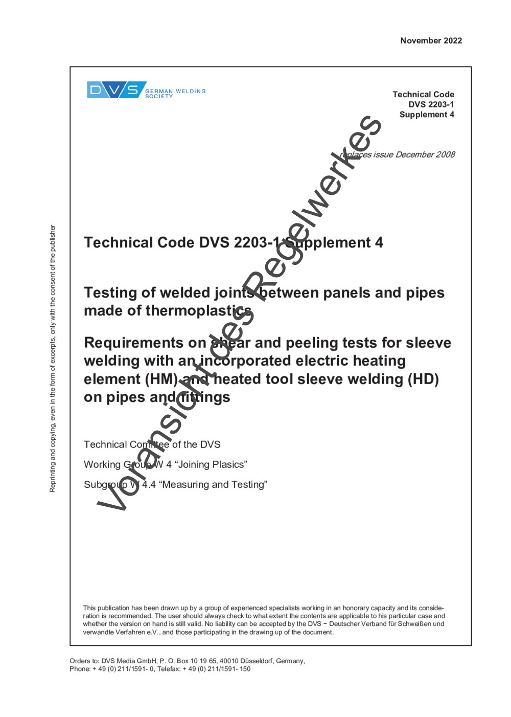 Guideline DVS 2203-1 Supplement 4 (11/2022)