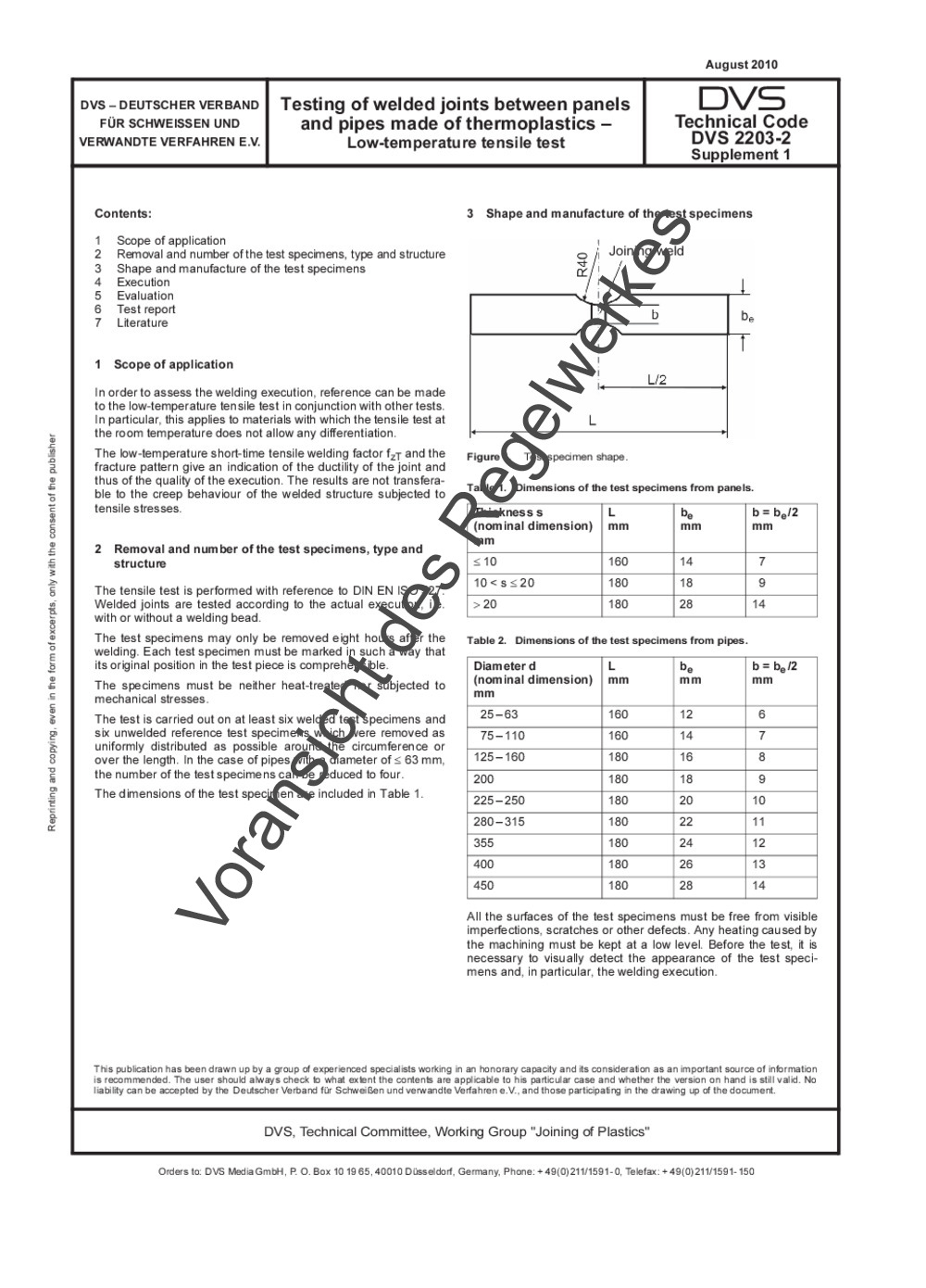Guideline DVS 2203-2 Supplement 1 (08/2010)