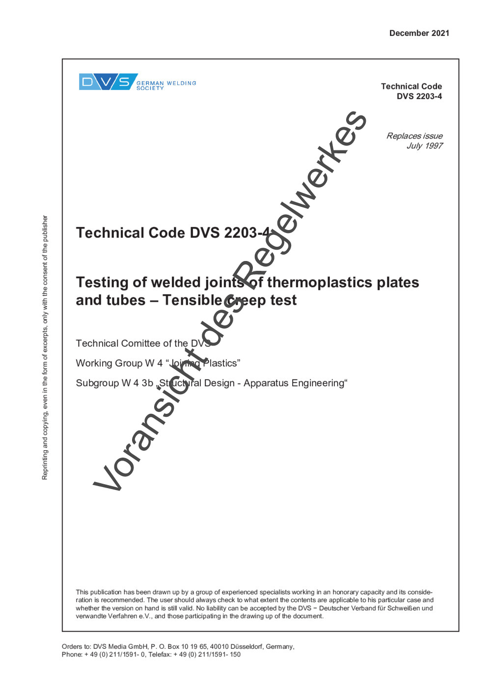Testing of welded joints of thermoplastics plates and tubes – Tensible creep test
