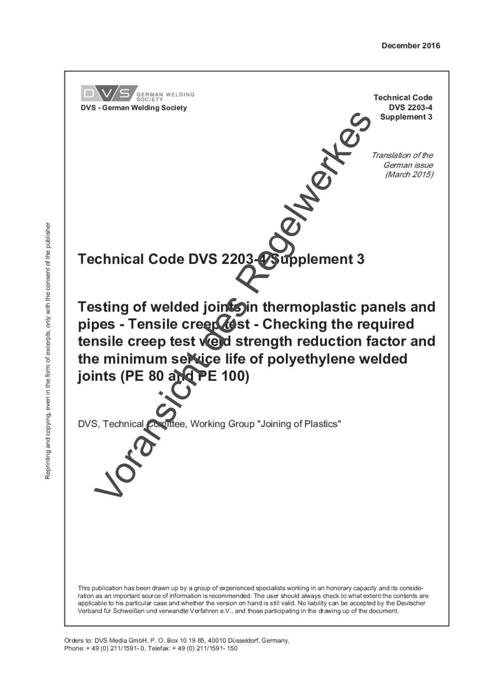 Guideline DVS 2203-4 Supplement 3 (12/2016)