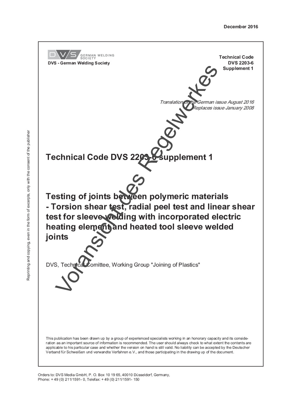 Guideline DVS 2203-6 Supplement 1 (12/2016)