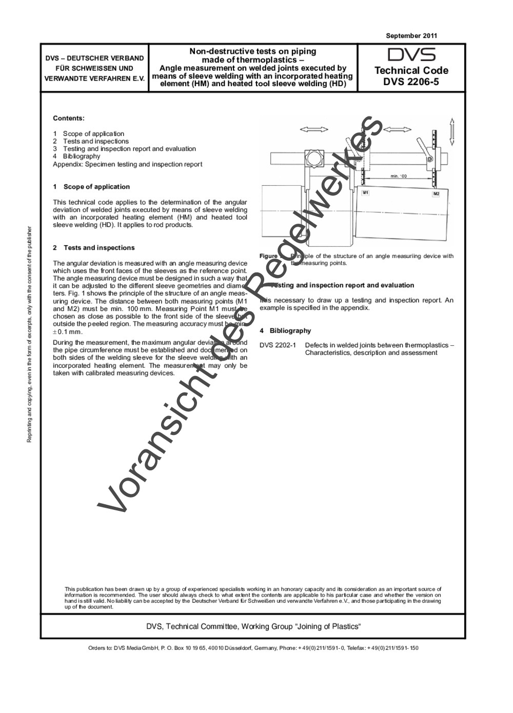 Non-destructive tests on piping made of thermoplastics – Angle measurement on welded joints executed by means of sleeve welding with an incorporated heating