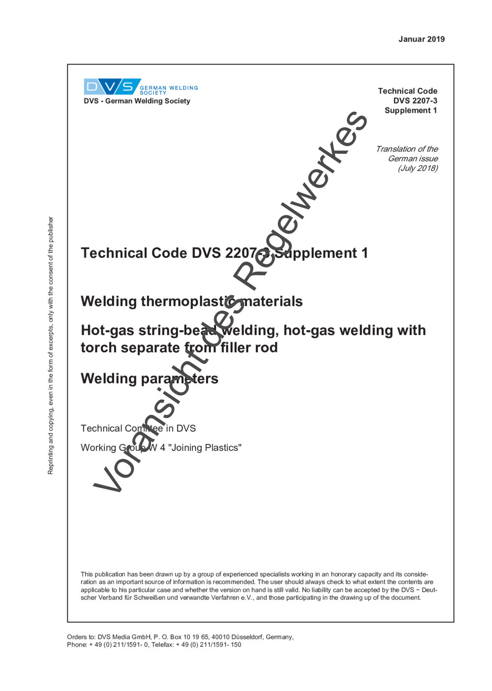 Guideline DVS 2207-3 Supplement 1 (im Archiv) (01/2019)