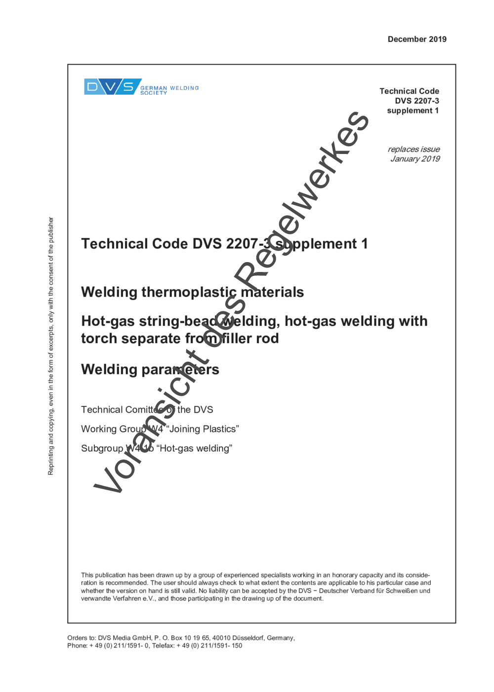 Guideline DVS 2207-3 Supplement 1 (12/2019)