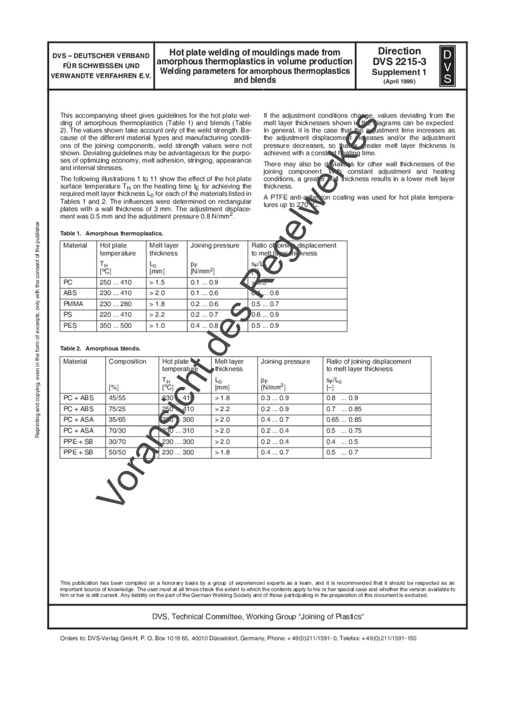 Guideline DVS 2215-3 Supplement 1 (04/1999)