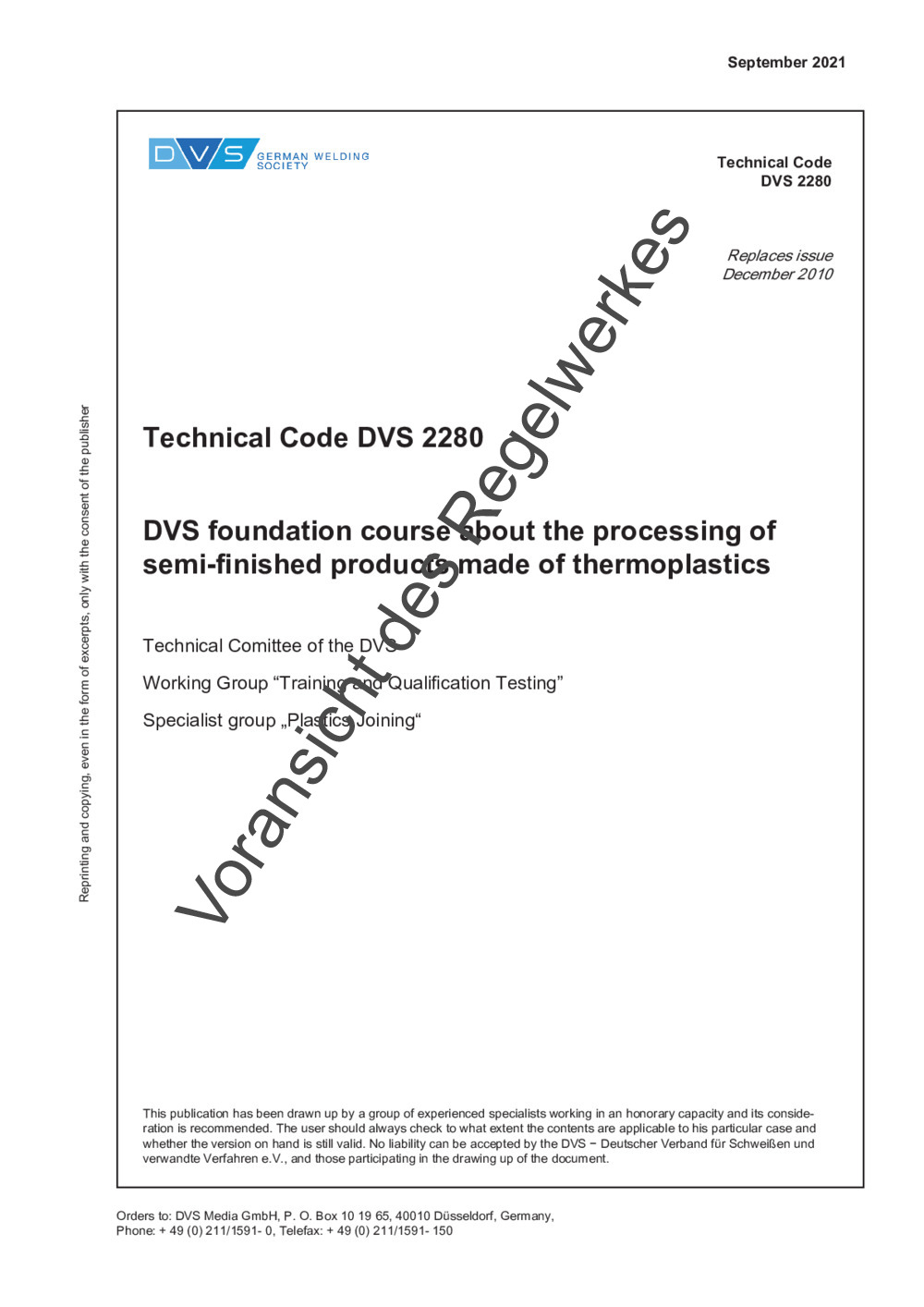 Guideline DVS 2281 (09/2021)