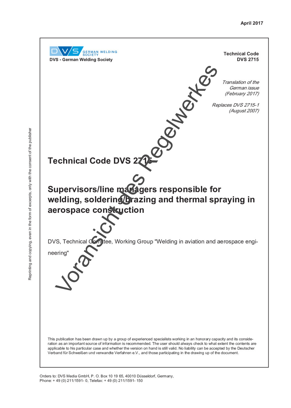 Supervisors-line managers responsible for welding soldering-brazing and thermal spraying in aerospace contruction