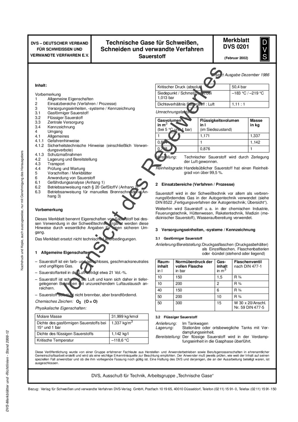 Dieses Merkblatt benennt Eigenschaften von Sauerstoff bei dessen Verwendung in der Schweißtechnik. Ergänzt werden diese Hinweise durch wesentliche Angaben für einen sicheren Umgang. Das Merkblatt ersetzt nicht technische Lieferbedingungen.
