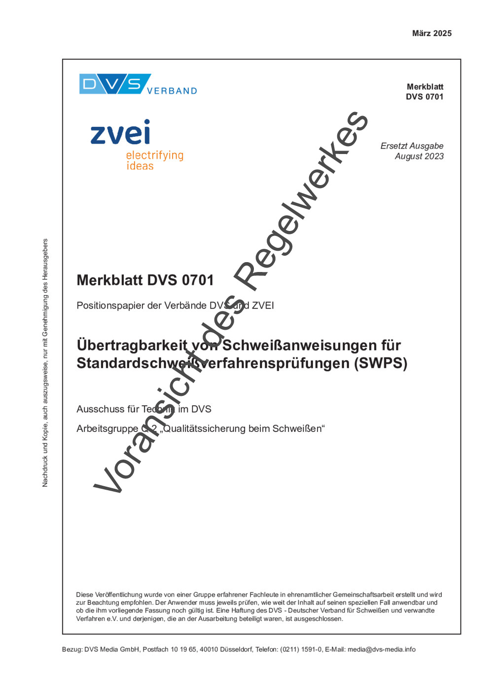 Merkblatt DVS 0701 (03/2025)
