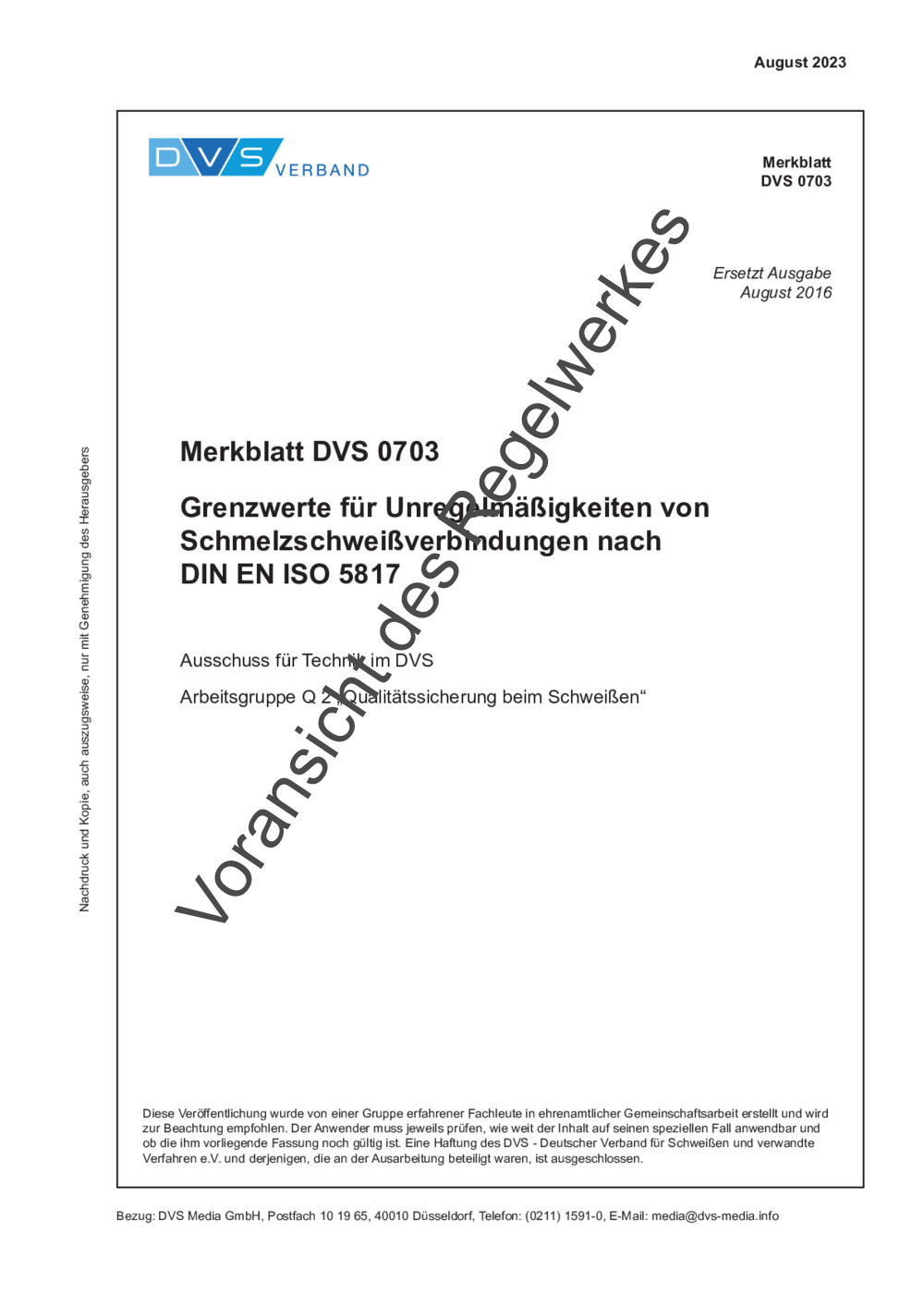 Merkblatt DVS 0703 (im Archiv) (08/2023)