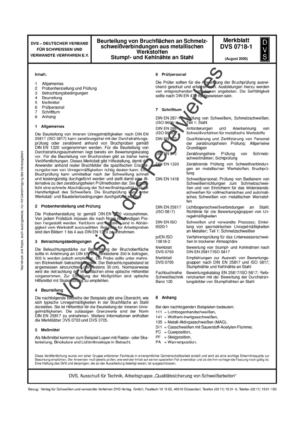 Merkblatt DVS 0718-1 (im Archiv) (08/2000)