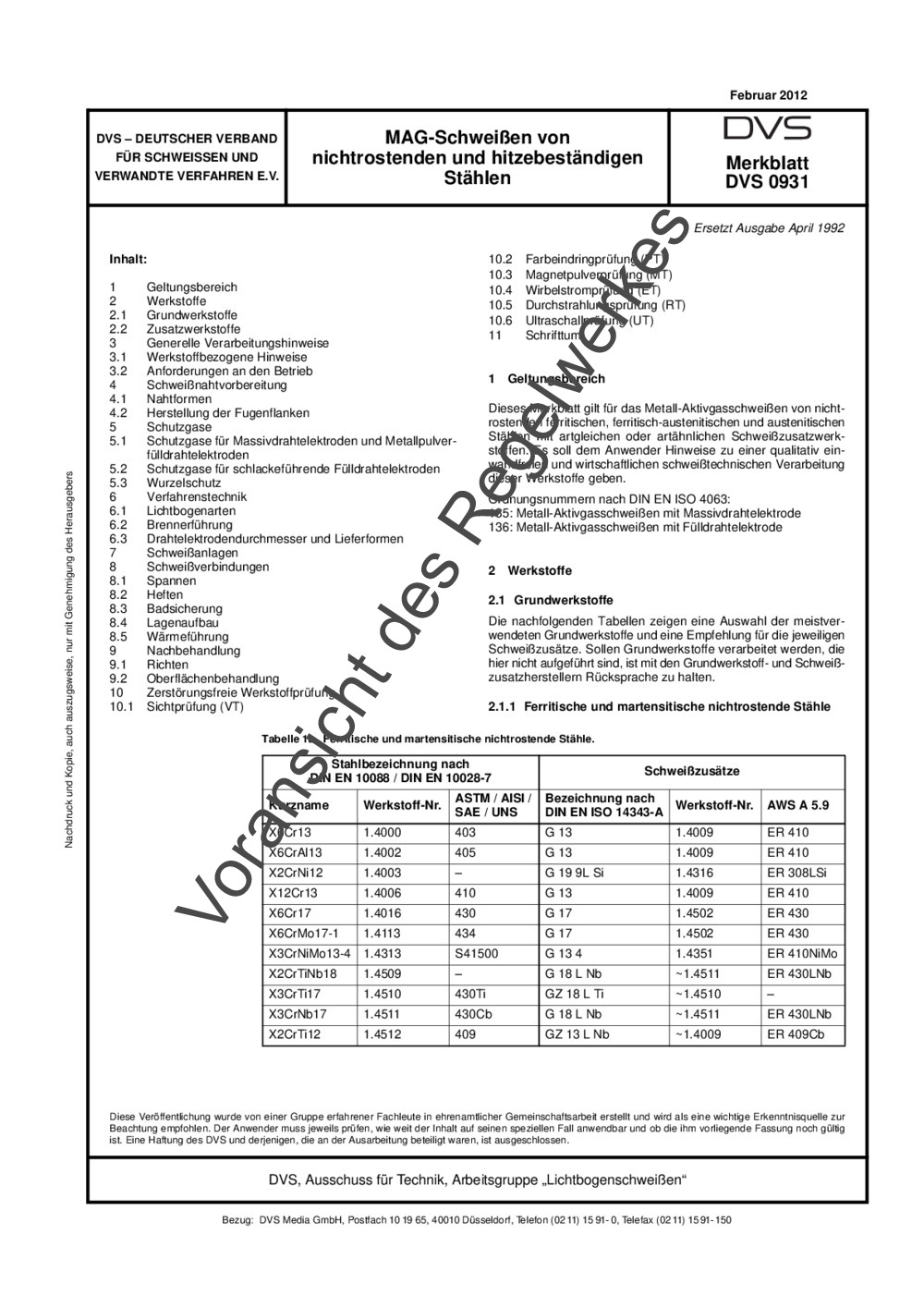 Dieses Merkblatt gilt für das Metall-Aktivgasschweißen von nichtrostenden ferritischen, ferritisch-austenitischen und austenitischenStählen mit artgleichen oder artähnlichen Schweißzusatzwerkstoffen. Es soll dem Anwender Hinweise zu einer qualitativ einwandfreien und wirtschaftlichen schweißtechnischen Verarbeitungdieser Werkstoffe geben.