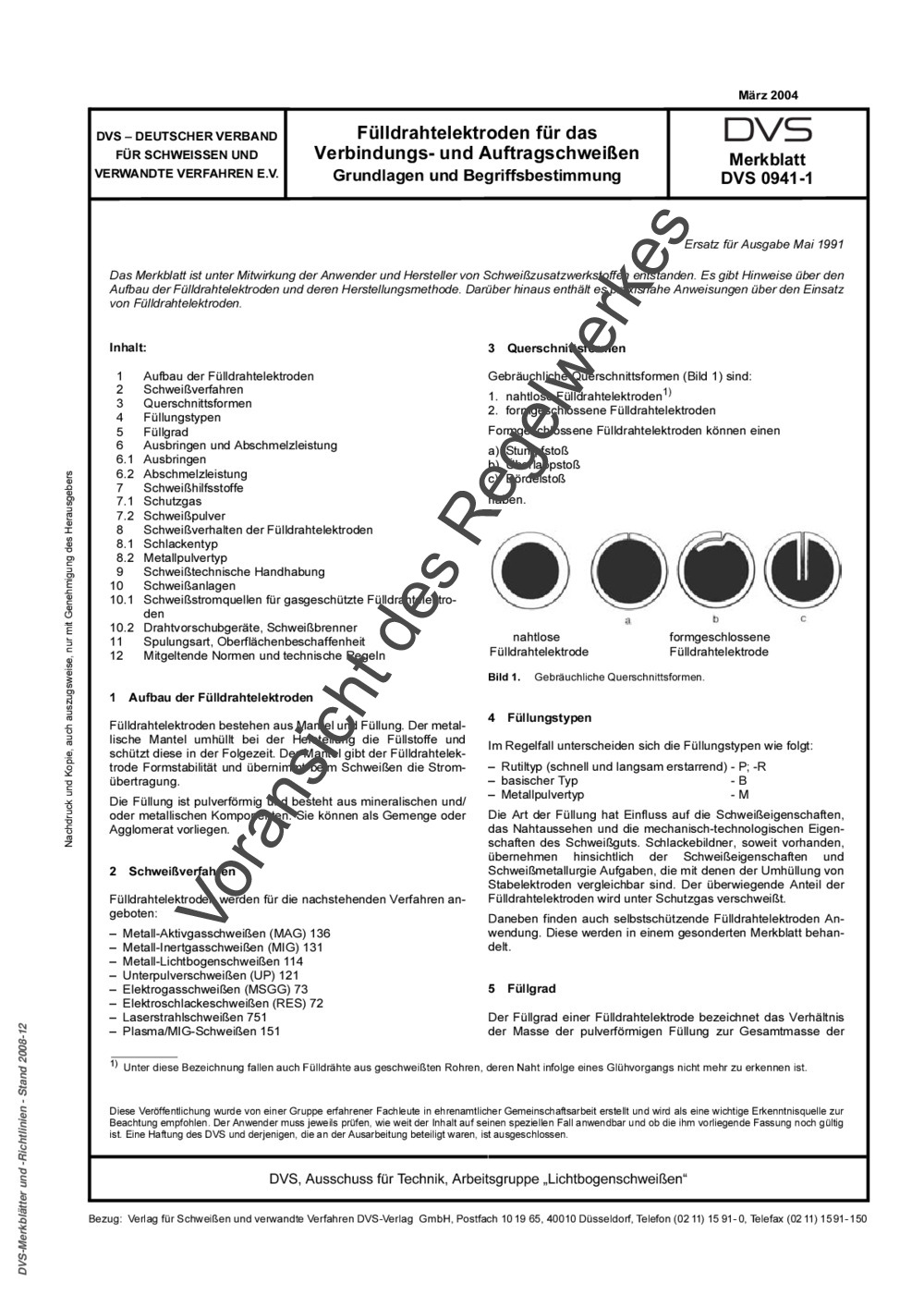 Merkblatt DVS 0941-1 (im Archiv) (03/2004)