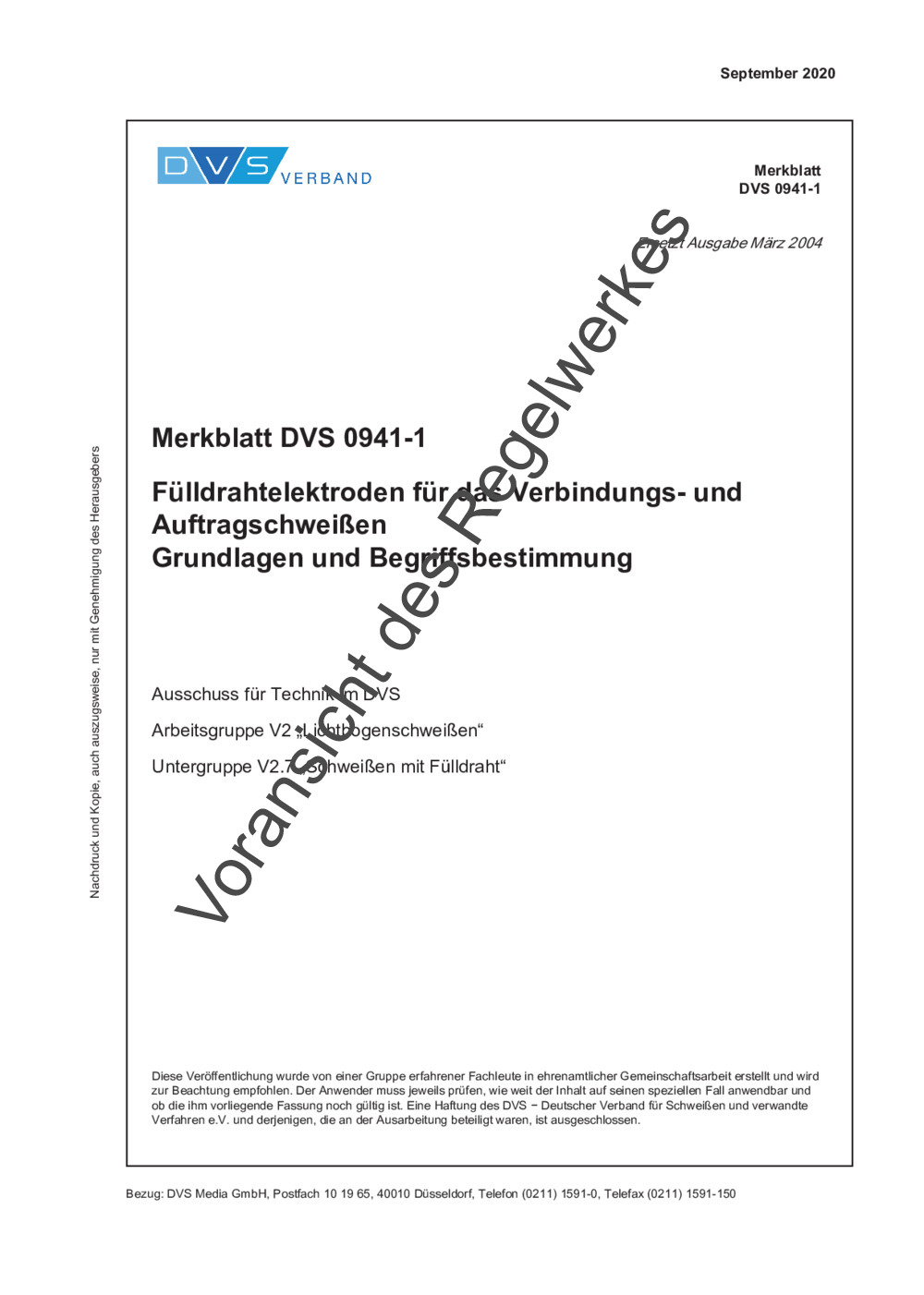Merkblatt DVS 0941-1 (im Archiv) (03/2004)
