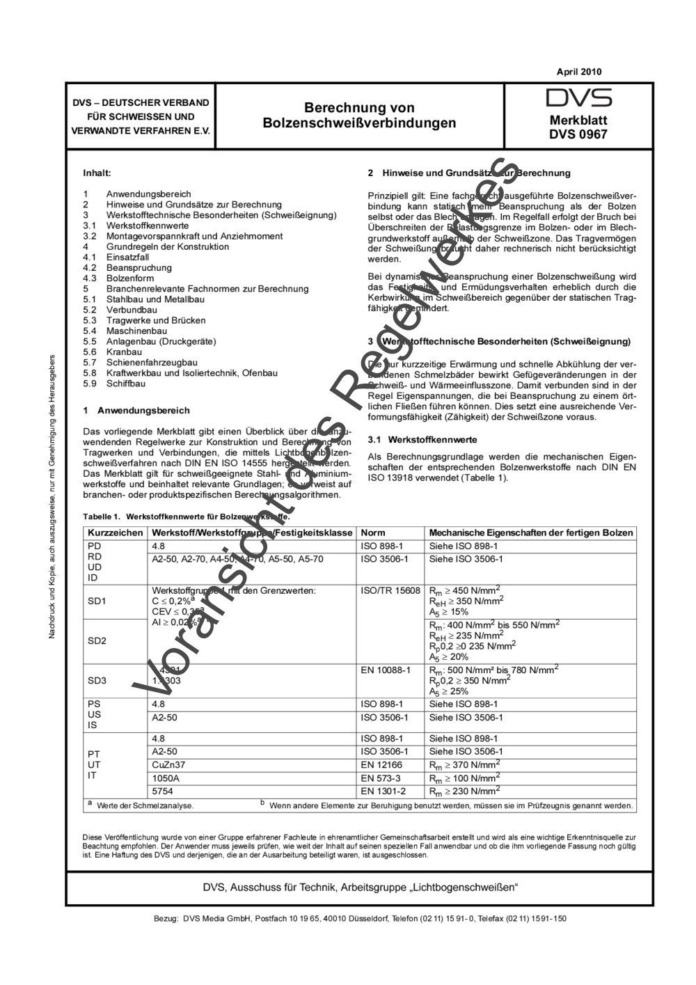Das vorliegende Merkblatt gibt einen Überblick über die anzuwendenden Regelwerke zur Konstruktion und Berechnung von Tragwerken und Verbindungen, die mittels Lichtbogenbolzenschweißverfahren nach DIN EN ISO 14555 hergestellt werden. Das Merkblatt gilt für schweißgeeignete Stahl- und Aluminiumwerkstoffe und beinhaltet relevante Grundlagen; es verweist auf branchen- oder produktspezifischen Berechnungsalgorithmen.
