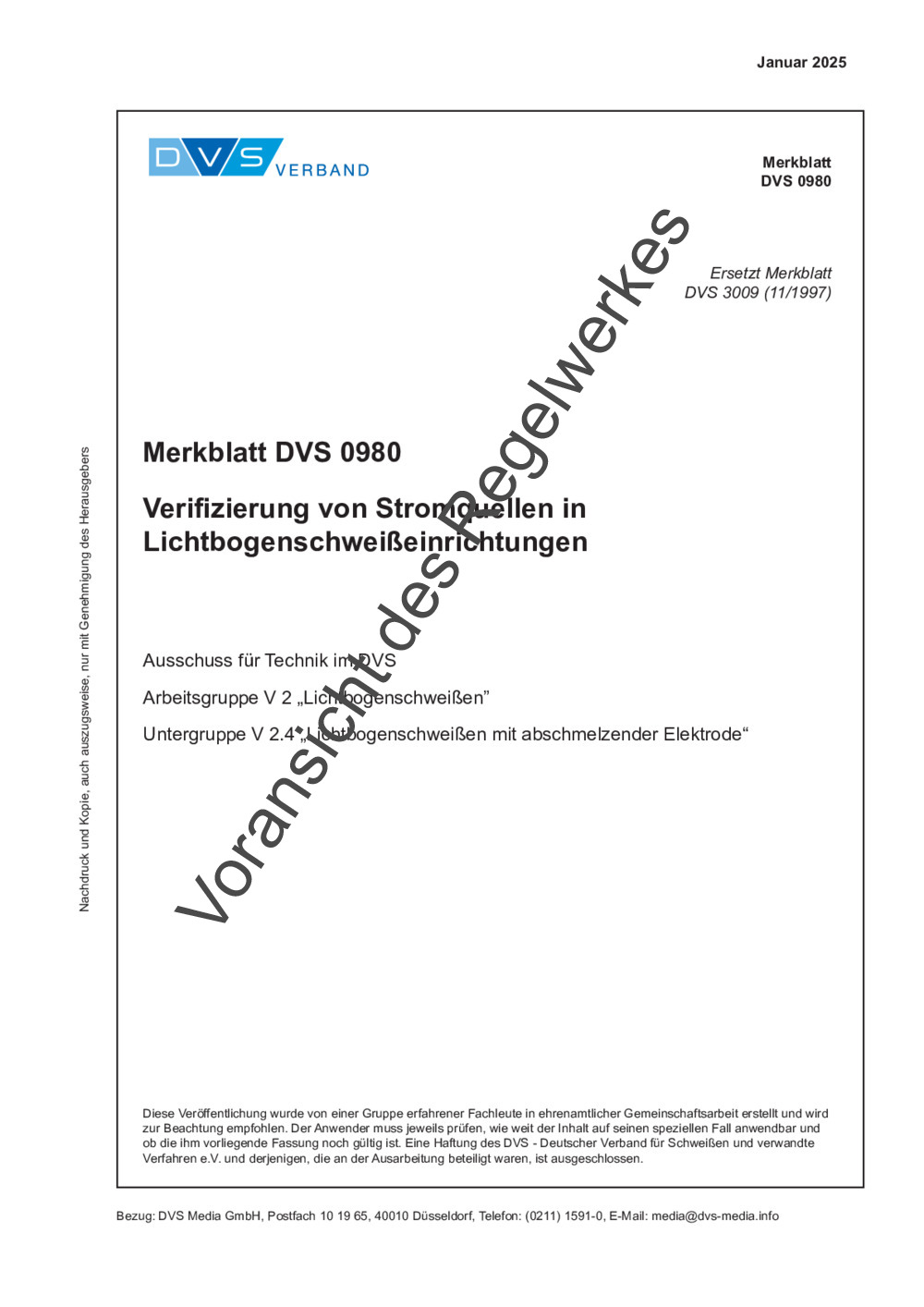 Das Merkblatt dient als Leitfaden zur praktischen Umsetzung des Überprüfungsvorganges (Verifizierung) von Schweißstromquellen bzw. des Kalibrierens von Messgeräten.