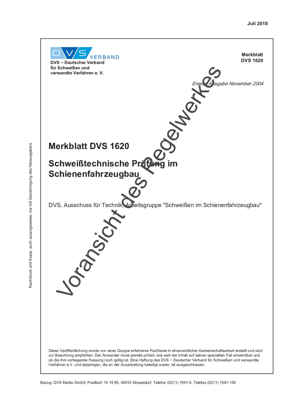 Merkblatt DVS 1620 (im Archiv) (07/2018)