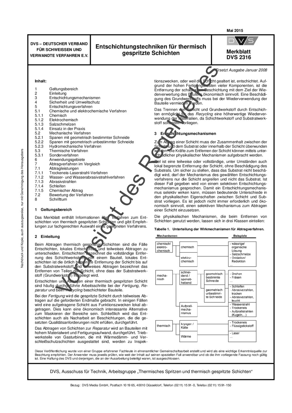 Das Merkblatt enthält Informationen über Verfahren zum Entschichten von thermisch gespritzten Schichten und gibt Empfehlungen zur fachgerechten Auswahl eines geeigneten Verfahrens.