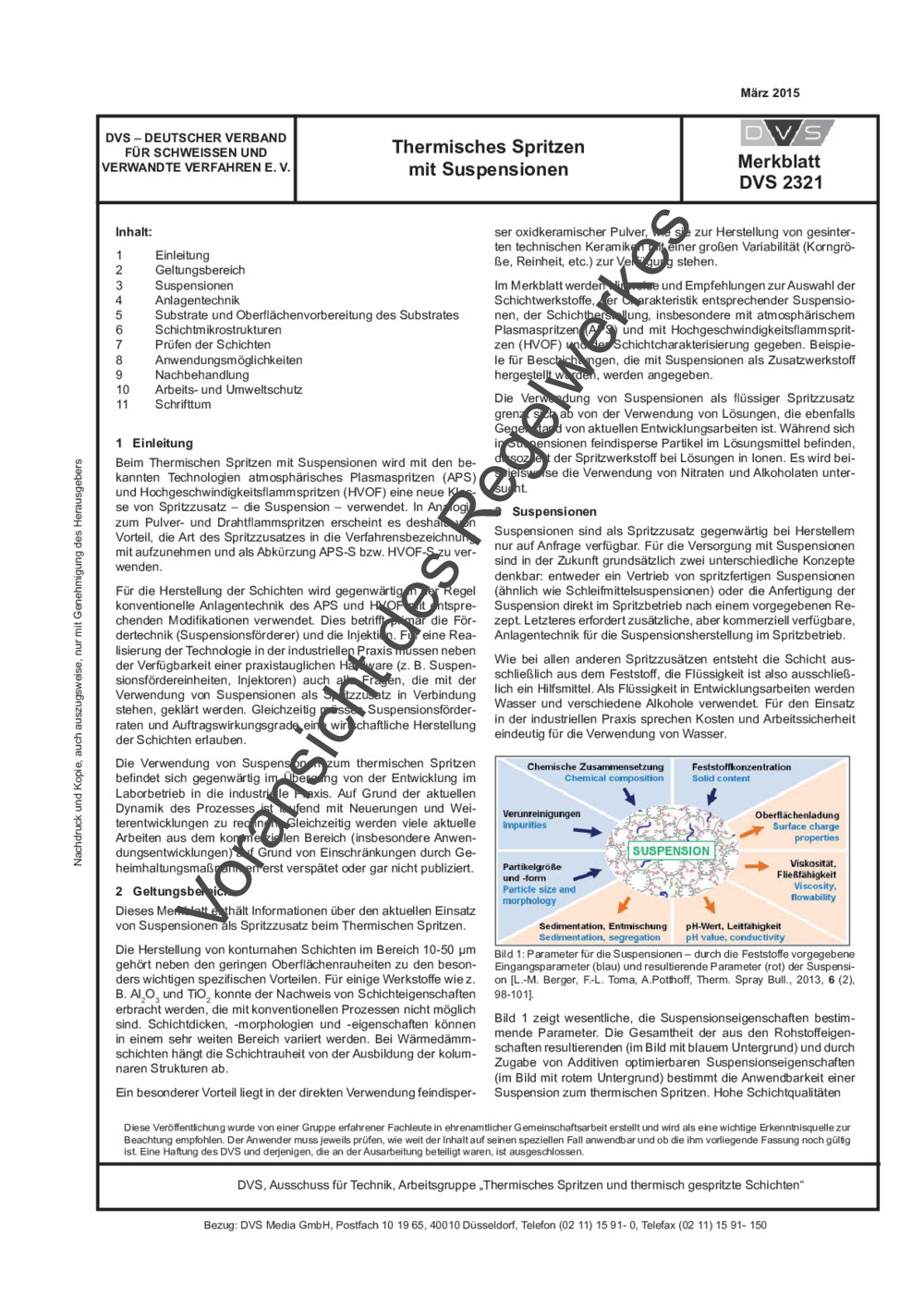 Dieses Merkblatt enthält Informationen über den aktuellen Einsatz von Suspensionen als Spritzzusatz beim Thermischen Spritzen.