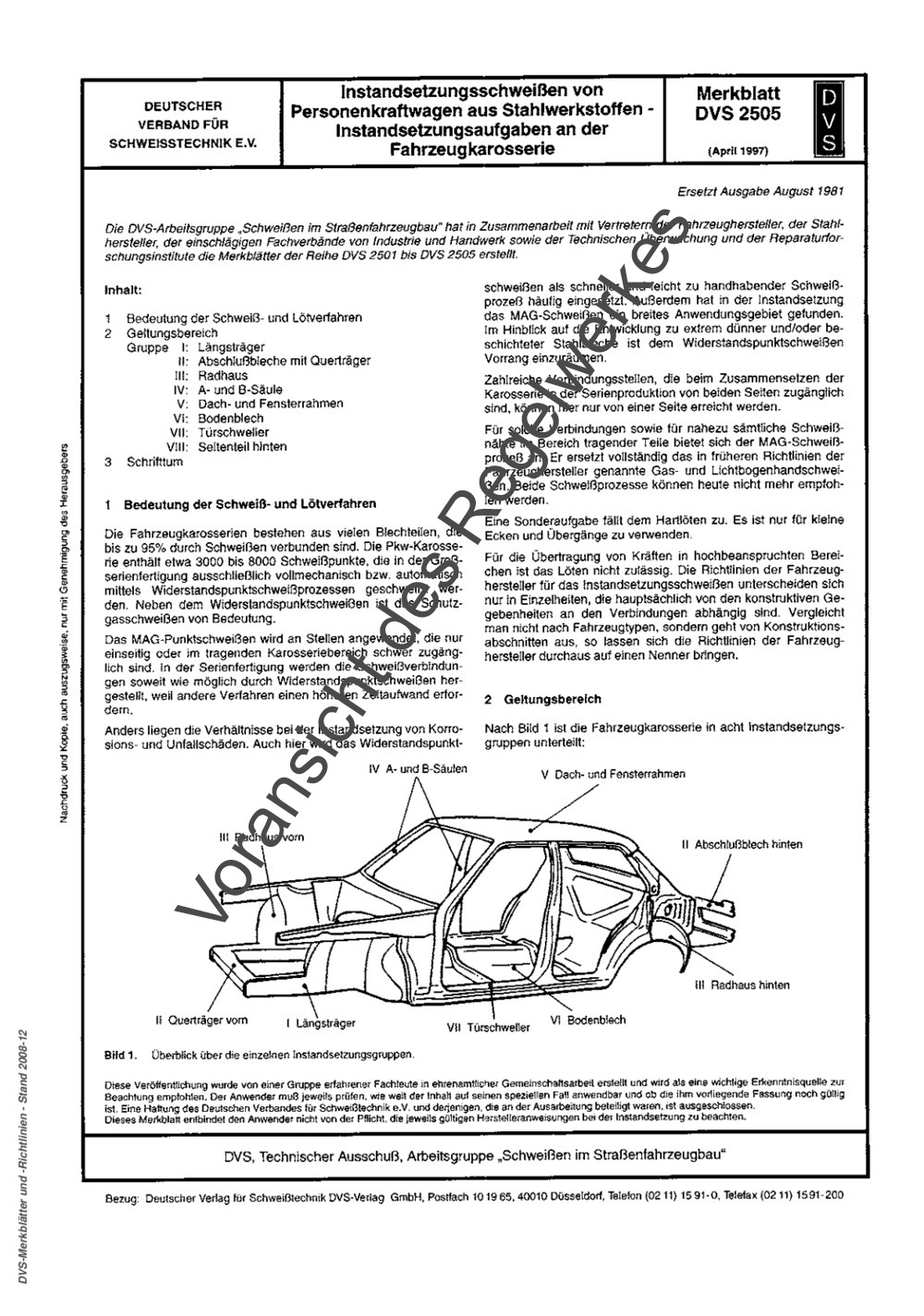 Die DVS-Arbeitsgruppe "Schweißen im Straßenfahrzeugbau" hat in Zusammenarbeit mit Vertretern der Fahrzeughersteller, der Stahlhersteller, der einschlägigen Fachverbände von Industrie und Handwerk sowie der Technischen Überwachung und der Reparaturforschungsinstitute die Merkblätter der Reihe DVS 2501 bis DVS 2505 erstellt.