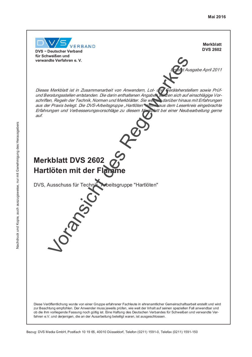 Das Merkblatt behandelt das Vorbereiten der Werkstücke (Oberflächenbeschaffenheit der zu lötenden Teile, Montage- und Lötspaltbreite, Fixierung der zu lötenden Teile, Anwärmen der Werkstücke) und das Durchführen des Lötens (Zuführen des Lotes, Abkühlen der Werkstücke und Entfernen der Flussmittelreste) sowie Mechanisierung und Automatisierung beim Hartlöten mit der Flamme. Ausführlich wird auch auf den Arbeits- und Umweltschutz eingegangen. Hartlöten ist ein Löten mit einem Zusatzwerkstoff, dessen Liquidustemperatur oberhalb von 450 °C liegt. Es wird zwischen Spalt und Fugenlöten unterschieden. Beim Spaltlöten füllt das flüssige Lot durch Kapillarkräfte einen engen Zwischenraum (Spalt) zwischen zwei Werkstücken (Lötflächen) und stellt dadurch eine stoffschlüssige Verbindung zwischen ihnen her. Beim Fugenlöten wird eine zwischen den Werkstücken befindliche Fuge (Montagespaltbreite ? 0,5 mm) vorwiegend mit Hilfe der Schwerkraft gefüllt.