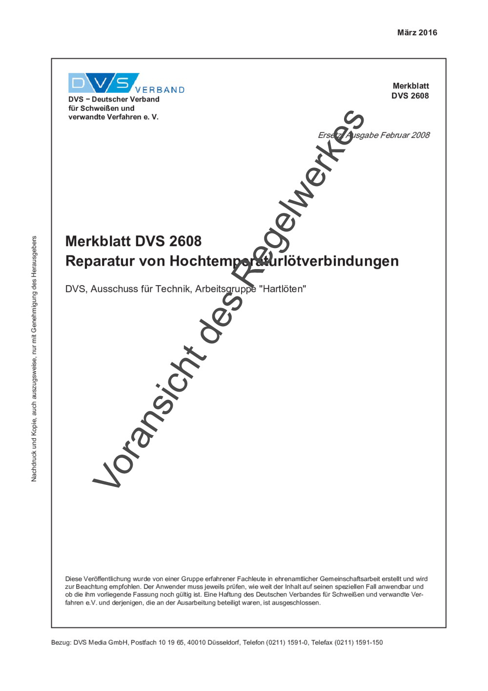 Das Merkblatt stellt eine Erfahrungssammlung dar. Es dient als Leitfaden bei der Ausführung von Qualitätssicherungsmaßnahmen. Der Hersteller kann die Kenntnis und die Anwendung dieses Merkblattes zur Erstellung eines Reparaturplans und gegebenenfalls als Bestandteil des Vertrages mit dem Auftraggeber nutzen. Für die Reparatur von Hochtemperaturlötverbindungen werden Verfahren angewendet, mit denen die bei der Qualitätsprüfung erkannten Fehler behoben werden können, damit die gewünschte Nutzung des Bauteils gewährleistet wird.