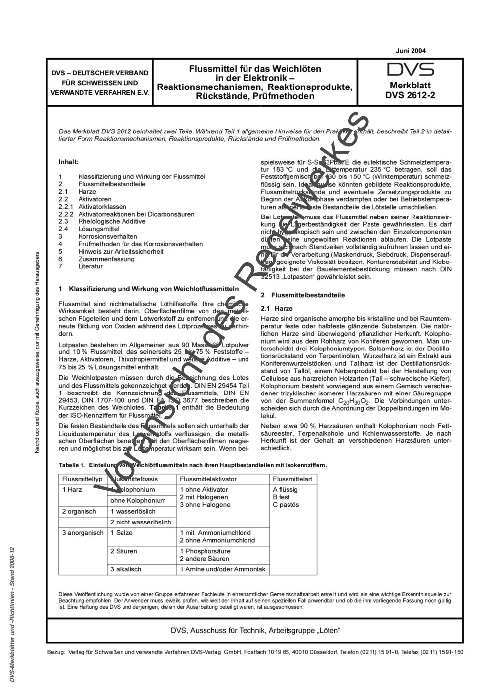 Das Merkblatt DVS 2612 beinhaltet zwei Teile. Während Teil 1 allgemeine Hinweise für den Praktiker enthält, beschreibt Teil 2 in detaillierter Form Reaktionsmechanismen, Reaktionsprodukte, Rückstände und Prüfmethoden.