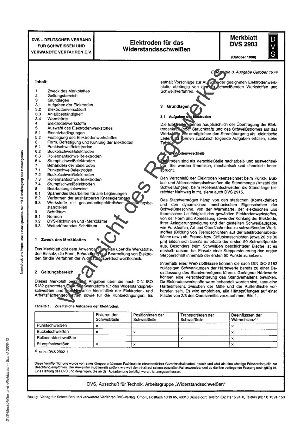Das Merkblatt gibt dem Anwender Hinweise über die Werkstoffe, den Einsatz, die Form, Behandlung und Bearbeitung von Elektroden für die Verfahren der Widerstandspressschweißtechnik.