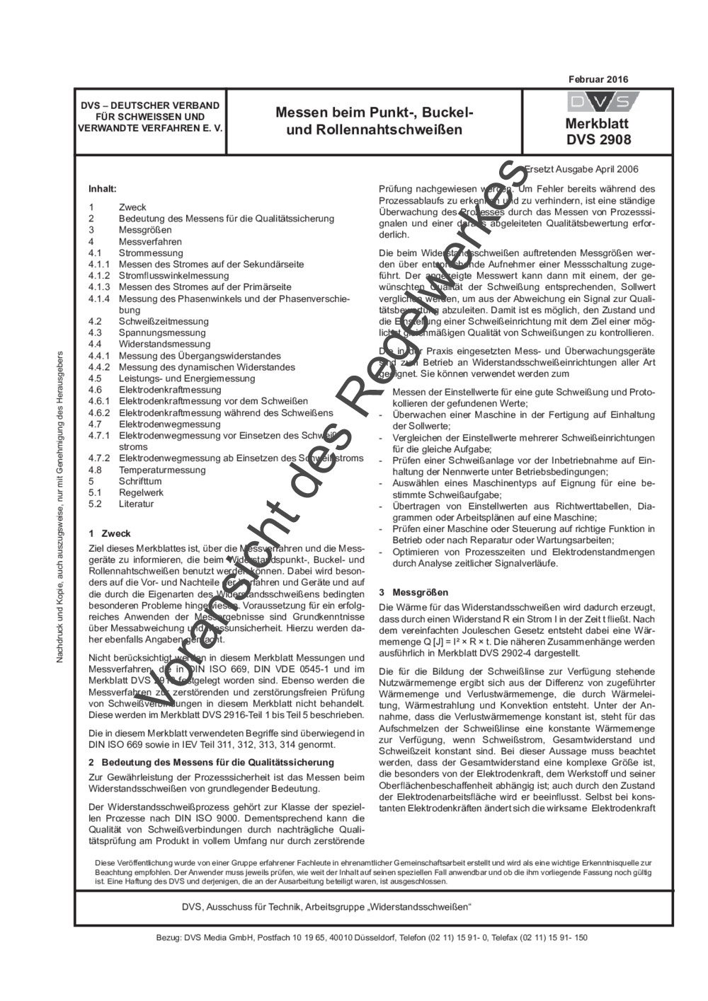 Ziel dieses Merkblattes ist, über die Messverfahren und die Messgeräte zu informieren, die beim Widerstandspunkt-, Buckel- und Rollennahtschweißen benutzt werden können. Dabei wird besonders auf die Vor- und Nachteile der Verfahren und Geräte und auf die durch die Eigenarten des Widerstandsschweißens bedingten besonderen Probleme hingewiesen. Voraussetzung für ein erfolgreiches Anwenden der Messergebnisse sind Grundkenntnisse über Messabweichung und Messunsicherheit. Hierzu werden daher ebenfalls Angaben gemacht.