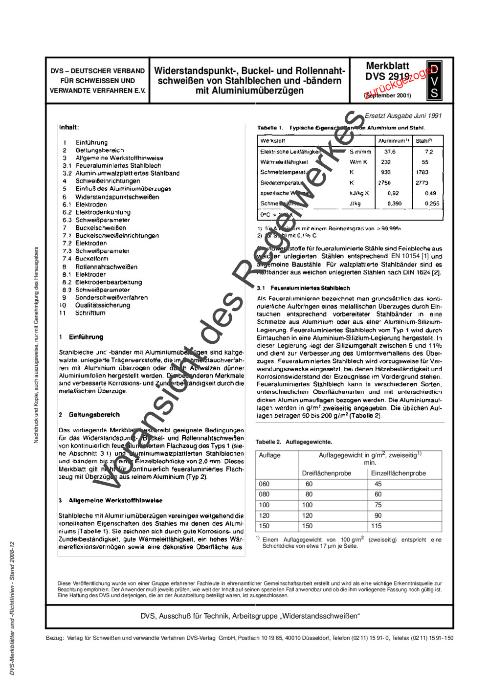 Merkblatt DVS 2919 (im Archiv) (09/2001)