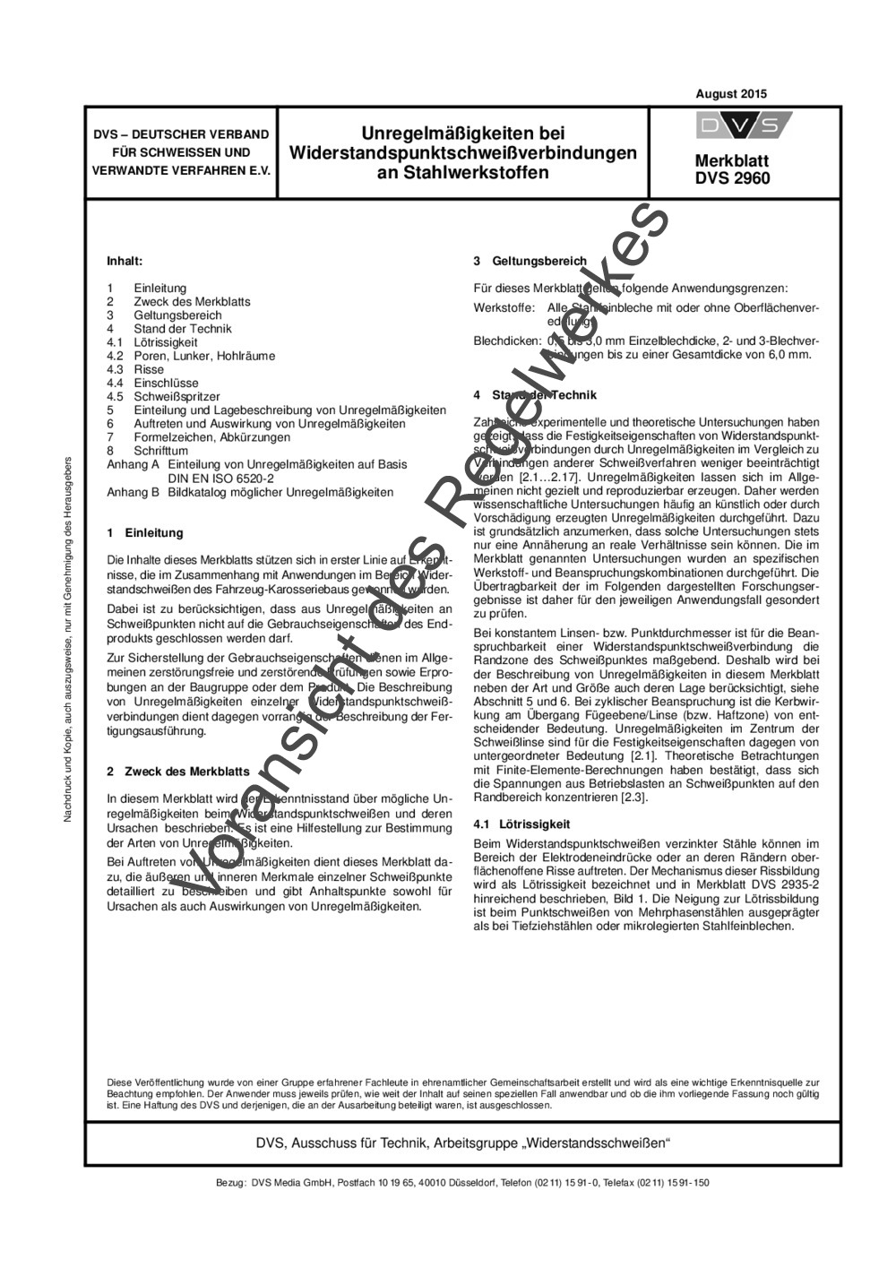 Die Inhalte dieses Merkblatts stützen sich auf Erkenntnisse, die im Zusammenhang mit Anwendungen im Bereich Widerstandschweißen im Fahrzeug-Karosseriebau gewonnen wurden. Dabei ist zu berücksichtigen, dass aus Unregelmäßigkeiten an Schweißpunkten nicht auf die Gebrauchseigenschaften des Endprodukts geschlossen werden darf. Zur Sicherstellung der Gebrauchseigenschaften dienen im Allgemeinen zerstörungsfreie und zerstörende Prüfungen sowie Erprobungen an der Baugruppe oder dem Produkt. Die Beschreibung von Unregelmäßigkeiten einzelner Widerstandspunktschweißverbindungen dient dagegen vorrangig der Beschreibung der Fertigungsausführung. In diesem Merkblatt werden der Erkenntnisstand über mögliche Unregelmäßigkeiten beim Widerstandspunktschweißen und deren Ursachen beschrieben.
