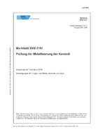 Dieses Merkblatt gibt dem Verarbeiter von hartlötfähig metallisierter Keramik Hinweise für eine einfache Prüfmöglichkeit zur Bestimmung der Haftfestigkeit des Verbundes Metallisierung-Keramik. Dabei wird auf die zu verwendenden Werkstoffe, die Probenherstellung und die Durchführung der zugehörigen Prüfverfahrens sowie dessen Auswertung eingegangen. Daraus ergeben sich die Maßnahmen zur Qualitätssicherung und Qualitätsbeurteilung, wie sie in der Praxis in Anbetracht der meist unterschiedlichen Geometrien der Bauteile und Herstellparameter wünschenswert sind. Dieses Merkblatt ersetzt das bisher gültige Merkblatt DVS 3101-1.