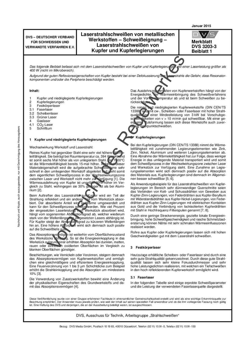Merkblatt DVS 3203-3 Beiblatt 1 (01/2015)