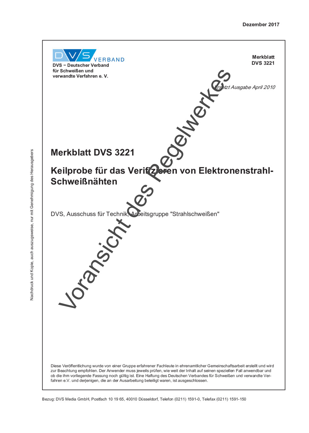 Merkblatt DVS 3221 (im Archiv) (04/2010)