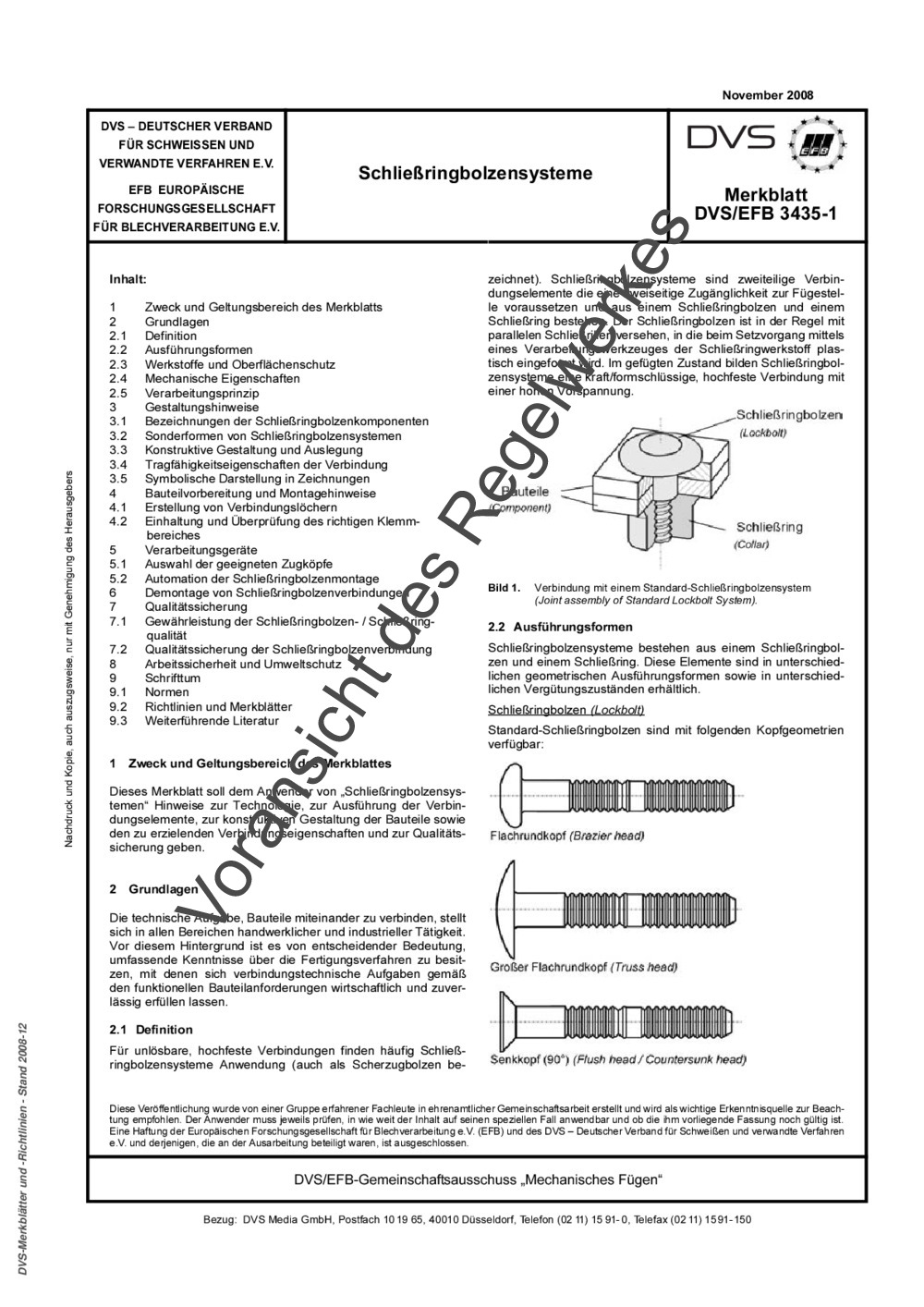 Dieses Merkblatt soll dem Anwender von „Schließringbolzensystemen“ Hinweise zur Technologie, zur Ausführung der Verbindungselemente, zur konstruktiven Gestaltung der Bauteile sowie den zu erzielenden Verbindungseigenschaften und zur Qualitätssicherung geben.