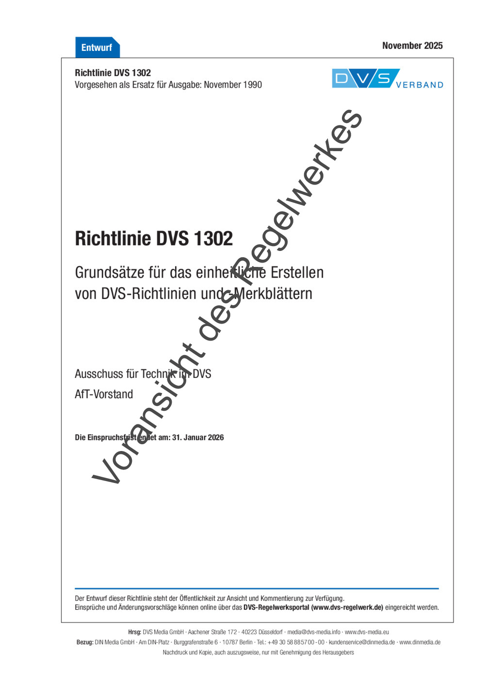 Entwurf Richtlinie DVS 1302 (11/2025)
