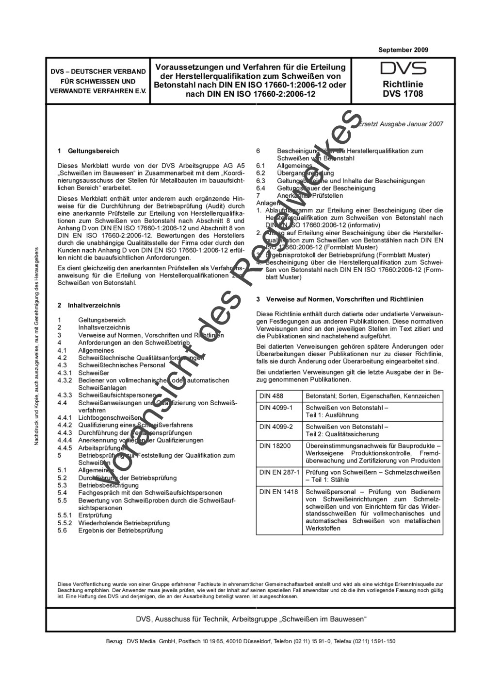Dieses Merkblatt wurde von der DVS Arbeitsgruppe AG A5 „Schweißen im Bauwesen“ in Zusammenarbeit mit dem „Koordinierungsausschuss der Stellen für Metallbauten im bauaufsichtlichen Bereich“ erarbeitet. Dieses Merkblatt enthält unter anderem auch ergänzende Hinweise für die Durchführung der Betriebsprüfung (Audit) durch eine anerkannte Prüfstelle zur Erteilung von Herstellerqualifikationen zum Schweißen von Betonstahl nach Abschnitt 8 und Anhang D von DIN EN ISO 17660-1:2006-12 und Abschnitt 8 von DIN EN ISO 17660-2:2006-12. Bewertungen des Herstellers durch die unabhängige Qualitätsstelle der Firma oder durch den Kunden nach Anhang D von DIN EN ISO 17660-1:2006-12 erfüllen nicht die bauaufsichtlichen Anforderungen. Es dient gleichzeitig den anerkannten Prüfstellen als Verfahrensanweisung für die Erteilung von Herstellerqualifikationen zum Schweißen von Betonstahl.