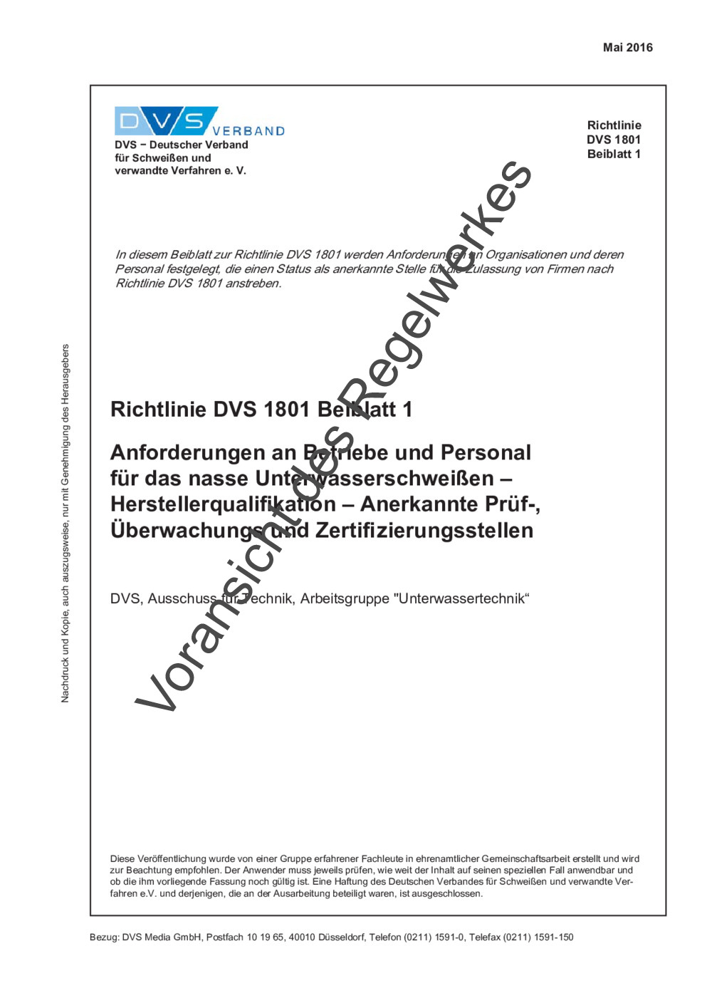 Richtlinie DVS 1801 Beiblatt 1 (im Archiv) (05/2016)